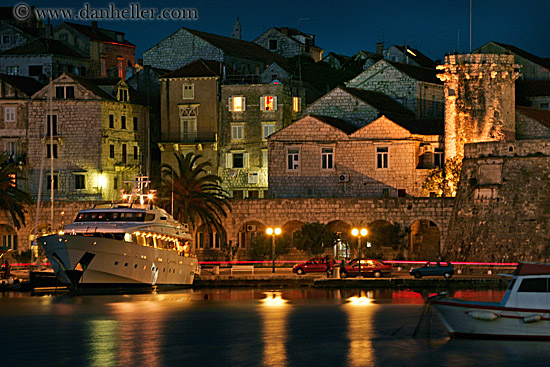 towns, water, nite, korcula, croatia, europe, boats, long exposure, horizontal, cityscapes, harbor