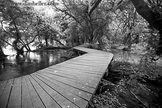 black and white, croatia, krka, slow exposure, boardwalk, europe, forests, horizontal
