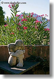 pink, hotels, provence, france, stones, nature, colors, flowers, green, st marie, moustiers, vertical, statues, europe