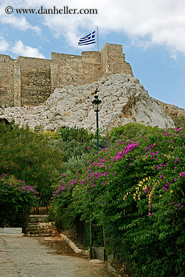 flags, acropolis, greece, athens, greek, flowers, vertical, europe