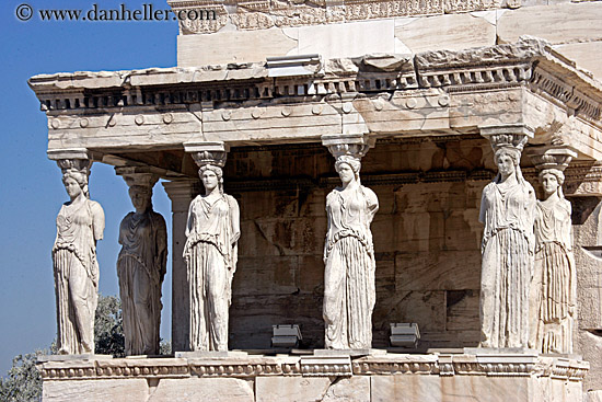 caryatids, acropolis, greece, europe, athens, horizontal, replica
