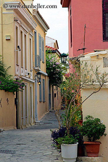 streets, plants, greece, athens, colorful, vertical, europe, buildings