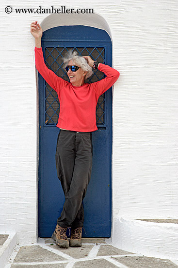 womens, paula, greece, senior citizen, sunglasses, people, vertical, clothes, doors, shirts, blues, europe, red, tourists
