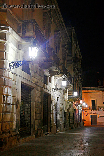 puglia, lecce, nite, glow, lamp posts, vertical, italy, street lamps, europe, lights
