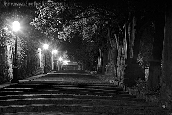 black and white, nite, lamp posts, italy, europe, long exposure, tuscany, horizontal, trees, florence