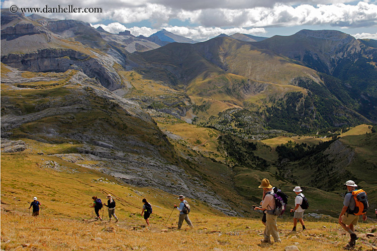 hiking, hikers, activities, hills, nature, people, spain, europe, horizontal, mountains, mt bisaurin
