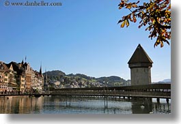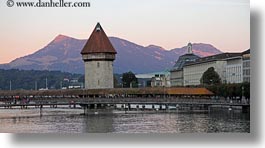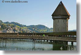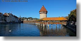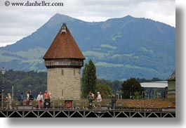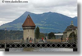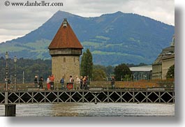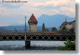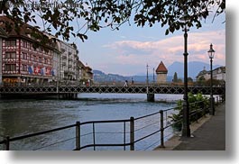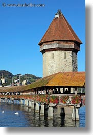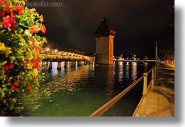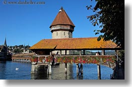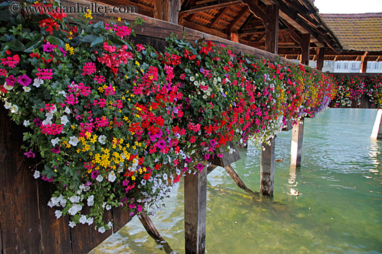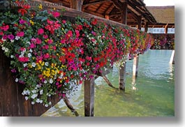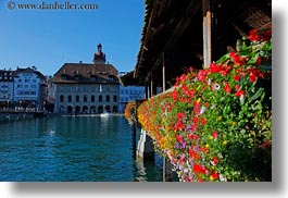 towns, switzerland, lucerne, covered bridge, bridge, structures, flowers, covered, europe, horizontal