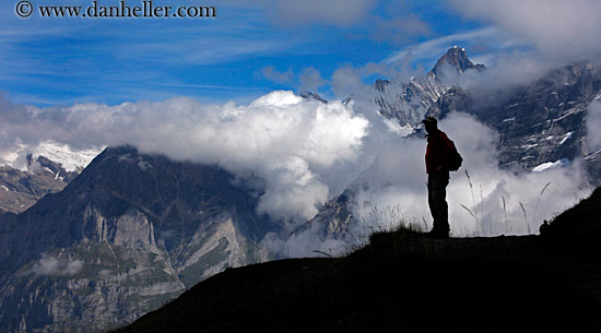 sky, roberts, switzerland, hikers, nature, silhouettes, snowcaps, men, people, clouds, europe, horizontal, mountains, wt people