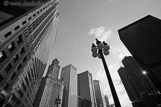 streets, north america, black and white, america, united states, chicago, lamp posts, illinois, horizontal, cityscapes