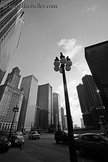 streets, north america, black and white, america, united states, chicago, lamp posts, vertical, illinois, cityscapes