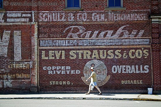 signs, north america, paintings, america, murals, strauss, united states, arts, materials, bricks, horizontal, levis, oregon, ashland