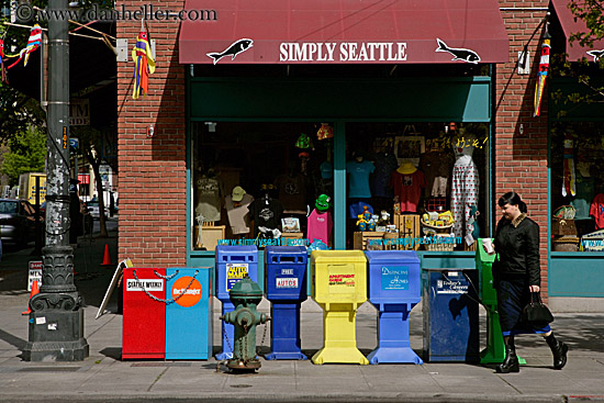 womens, streets, pacific northwest, north america, america, boxes, washington, united states, western usa, people, newspaper, seattle, pedestrians, colored, horizontal