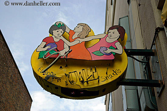 signs, north america, america, western usa, posts, alleys, horizontal, pacific northwest, womens, united states, washington, arts, people, seattle, cartoon, pike place