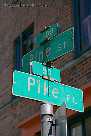 streets, signs, pacific northwest, north america, america, washington, united states, western usa, vertical, pike, seattle, pike place, pines