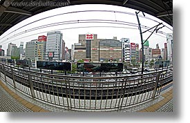 asia, fisheye, fisheye lens, horizontal, japan, tracks, trains, transportation, photograph