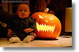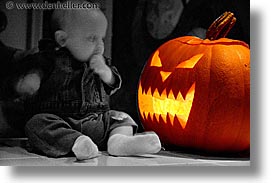 babies, boys, halloween, horizontal, infant, jacks, pumpkins, slow exposure, photograph