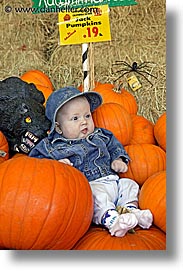 babies, boys, halloween, infant, jacks, scarecrow, vertical, photograph