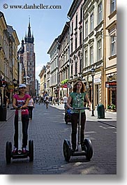europe, krakow, people, poland, segways, transportation, vertical, womens, photograph