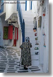 europe, greece, mykonos, old, stairs, vertical, walking, white wash, womens, photograph