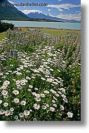 daisies, lago viedma, latin america, patagonia, vertical, photograph