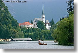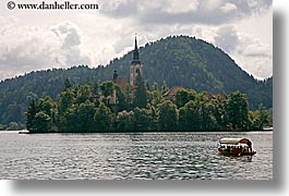 bled, boats, churches, europe, horizontal, lakes, slovenia, photograph