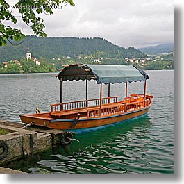 bled, boats, covered, europe, lakes, slovenia, square format, photograph