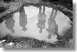 black and white, bohinj, europe, horizontal, people, puddle, reflections, slovenia, photograph