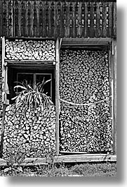 black and white, bohinj, europe, slovenia, stacked, vertical, windows, woods, photograph