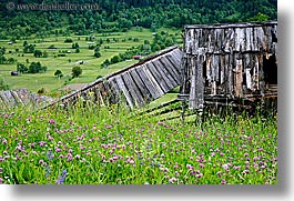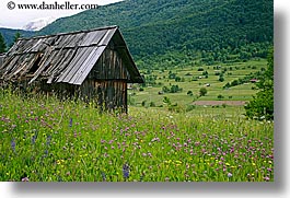bohinj, europe, horizontal, old, scenics, shack, shed, slovenia, wildflowers, photograph