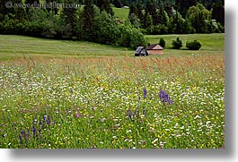 bohinj, europe, horizontal, scenics, shed, slovenia, wildflowers, photograph