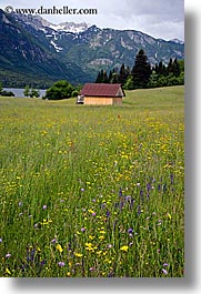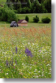 bohinj, europe, scenics, shack, shed, slovenia, vertical, wildflowers, photograph