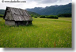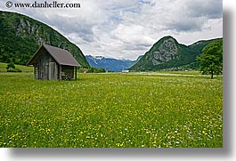 bohinj, europe, horizontal, scenics, shack, shed, slovenia, wildflowers, photograph