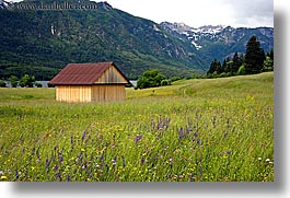 barn, bohinj, europe, horizontal, scenics, slovenia, wildflowers, photograph