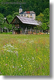 barn, bohinj, europe, scenics, slovenia, vertical, wildflowers, photograph