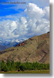 architectural ruins, asia, clouds, mountains, scenics, tibet, vertical, yarlung valley, photograph