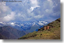 architectural ruins, asia, clouds, horizontal, mountains, scenics, tibet, yarlung valley, photograph