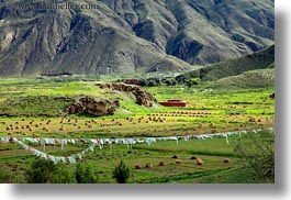 asia, fields, hay, horizontal, scenics, stacks, tibet, workers, yarlung valley, photograph