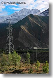 asia, mountains, scenics, telephones, tibet, vertical, wires, yarlung valley, photograph