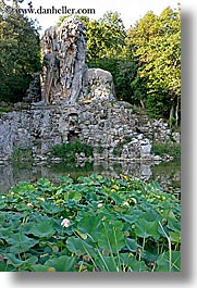 apennine, demidoff park, europe, italy, statues, stones, towns, tuscany, vertical, water, photograph