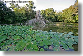 demidoff park, europe, horizontal, italy, lilly pads, pond, reflections, towns, tuscany, water, photograph