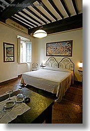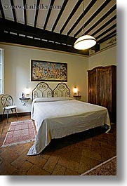 bedrooms, beds, europe, hotel albergo giglio, hotels, italy, montalcino, slow exposure, teracotta, towns, tuscany, vertical, photograph