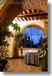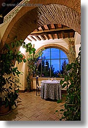 archways, bricks, dining, dining table, dusk, europe, hotel albergo giglio, hotels, italy, long exposure, montalcino, tables, towns, tuscany, vertical, views, windows, photograph