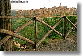 cats, cities, cityscapes, europe, fences, horizontal, italy, old, pitigliano, towns, tuscany, photograph