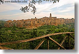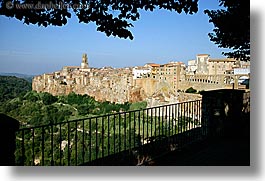 cities, cityscapes, europe, fences, horizontal, italy, old, pitigliano, towns, tuscany, photograph