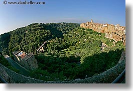 cities, cityscapes, europe, fisheye, fisheye lens, horizontal, italy, old, pitigliano, towns, tuscany, valley, photograph