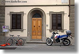 bicycles, doors, europe, horizontal, italy, motorcycles, scarperia, towns, tuscany, photograph