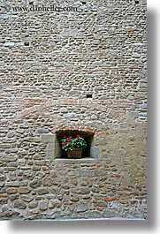 bricks, europe, flowers, italy, scarperia, stones, towns, tuscany, vertical, walls, photograph