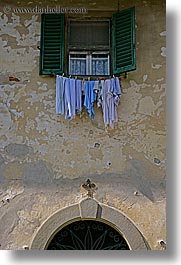 clothes, europe, from, italy, laundry, scarperia, towns, tuscany, vertical, windows, photograph