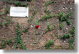 abstracts, bricks, europe, flowers, italy, red, roses, scarperia, stones, towns, tuscany, vertical, photograph