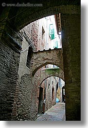 archways, bricks, cobblestones, europe, italy, narrow streets, siena, streets, towns, tuscany, vertical, photograph